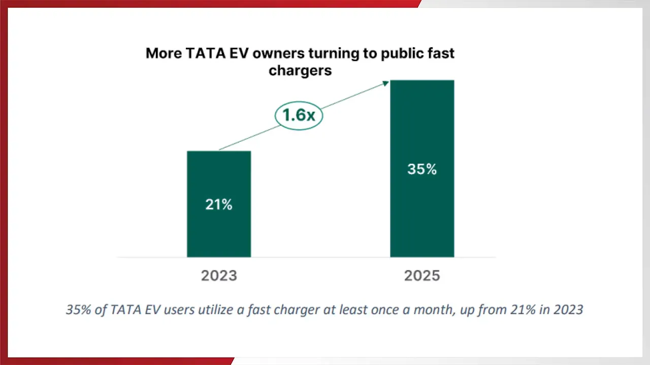 Charger utilisation is improving, with the top quarter of chargers crossing profitability thresholds. Consumer behaviour mirrors this trend. 35% of Tata EV users accessed a fast charger at least once a month in 2025, which is up from 21% in 2023. Seventy-seven percent of Tata.ev owners have taken trips requiring public charging and nearly 14,000 owners rely primarily on public infrastructure. This shift signals rising trust in the network, but also greater responsibility for operators to ensure reliability.